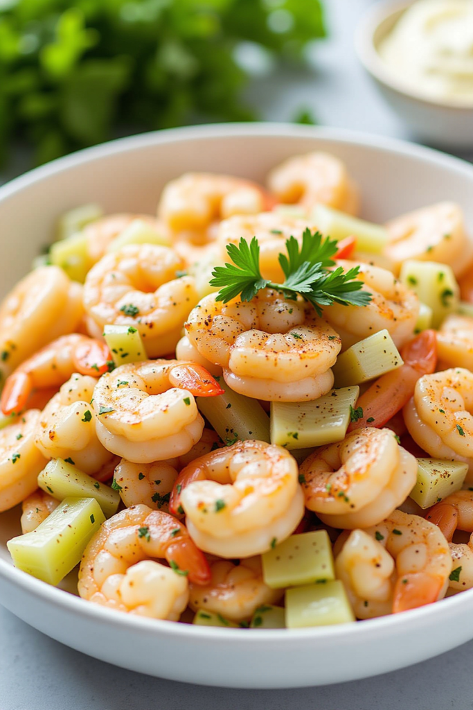 For unmatched flavor and texture, use medium to large shrimp—either freshly cooked or thawed from frozen. Peel and devein the shrimp for a clean, tender bite. A quick boil in water (with an extra shake of Old Bay) ensures the shrimp stay plump and juicy. Chill thoroughly before mixing to lock in freshness and make prep a snap.